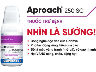Phun 𝐀𝐩𝐫𝐨𝐚𝐜𝐡 𝟐𝟓𝟎𝐒𝐂 ở giai đoạn trước và sau trổ để đạt kết quả tốt nhất: ⚡️ 𝐀𝐩𝐫𝐨𝐚𝐜𝐡 - Công nghệ độc đáo của 𝐂𝐨𝐫𝐭𝐞𝐯𝐚; ⚡️ 𝐀𝐩𝐫𝐨𝐚𝐜𝐡 - Phổ tác động rộng, hiệu quả cao; ⚡️ 𝐀𝐩𝐫𝐨𝐚𝐜𝐡 - Bộ lá màu vàng tranh (mỡ gà), vô